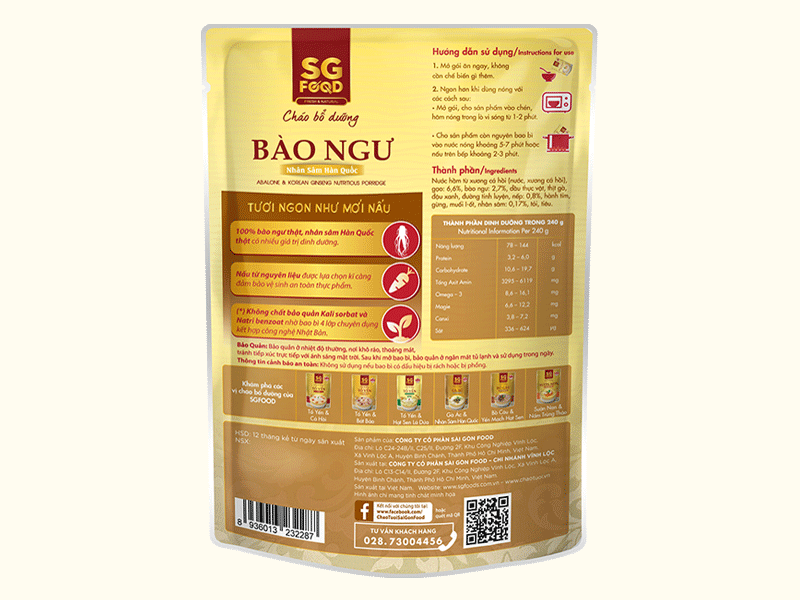 Cháo bổ dưỡng bào ngư nhân sâm Hàn Quốc 240g