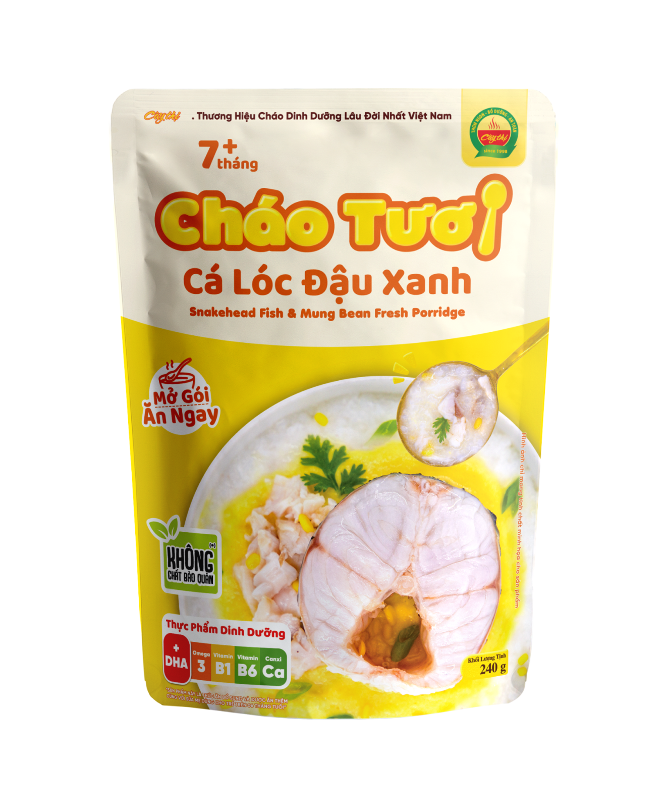 Cháo tươi cá lóc đậu xanh được chế biến từ cá lóc, một loại thực phẩm các bác sĩ dinh dưỡng khuyên dùng cho cả người lớn và trẻ nhỏ. Trong thịt cá lóc chứa ít mỡ, giàu chất khoáng thiết yếu như sắt, kali và vitamin như vitamin A, C, B1, B2 hỗ trợ cho sự phát triển của bé. Cháo tươi cá lóc đậu xanh đặc biệt rất tốt cho trẻ biếng ăn hoặc suy dinh dưỡng. Sản phẩm giúp bé tăng cân, phòng chống nguy cơ suy dinh dưỡng, bổ sung chất xơ và Canxi và cải thiện cân nặng ở bé.