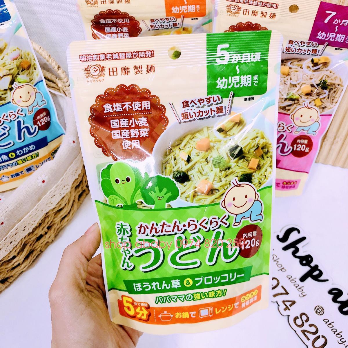 - Sợi mì Udon cho bé từ 7 tháng trở lên ( Sợi ngắn dẹp ). Mì cho bé 7 tháng có các vị : rau bina, bí đỏ, cà rốt, rong biển.
