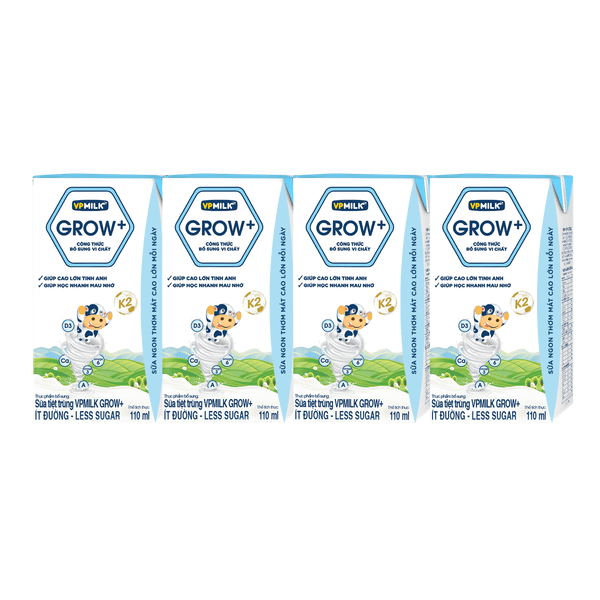 Sữa Tiệt Trùng VPMilk Grow+ Ít Đường 110ml x Lốc 4